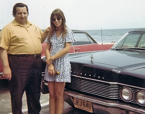 The above photos were taken aboard the Cape May-Lewes Ferry, on our way to Rehobeth Beach, Delaware where dad had customers to see. My sister likely took the photo as she was with us that day. This was always an especially fun time as I got to see the ocean and have a great lunch out with my dad who knew all the best places to eat! Here we are with dad's big black Lincoln, a car he dearly loved until he finally got the Caddy he wanted a few years later.